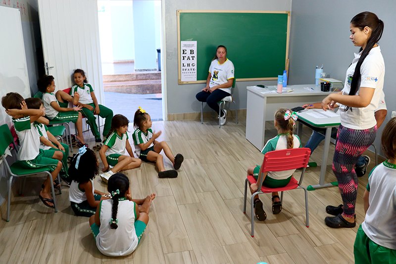 A Secretaria Municipal de Saúde e Vigilância Sanitária, através do Programa Saúde na Escola (PSE), realizou nos alunos da Escola Vania Maria Simão a antropometria (peso/altura) e a acuidade visual (testes de visão).