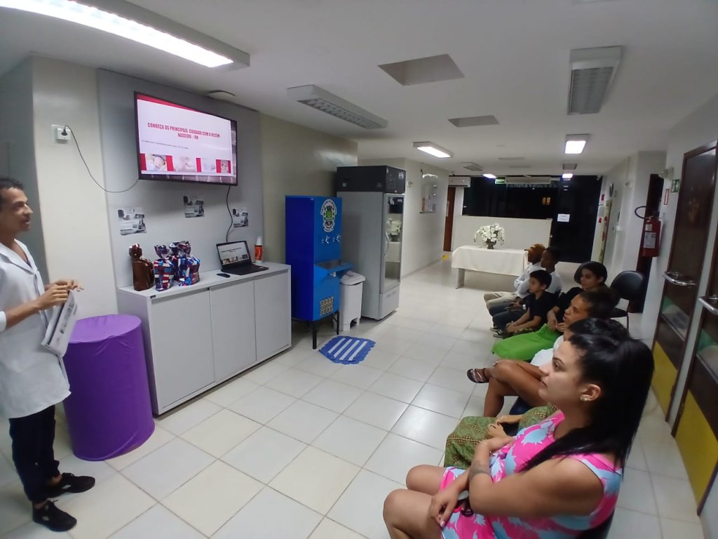 O enfermeiro Mateus Sério de Paula falou com as futuras mamães sobre os cuidados a serem tomados com os recém nascidos.