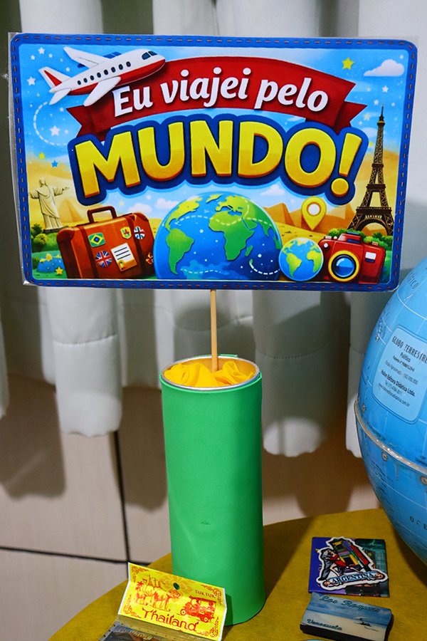 Com o apoio e auxílio da nossa comunidade, organizamos um espaço temático muito especial, onde as crianças puderam explorar e vivenciar uma grande variedade de artefatos, utensílios e elementos que representam a diversidade cultural ao redor do mundo. Além disso, assistiram a um pequeno vídeo com curiosidades sobre alguns países, ampliando ainda mais seus conhecimentos.